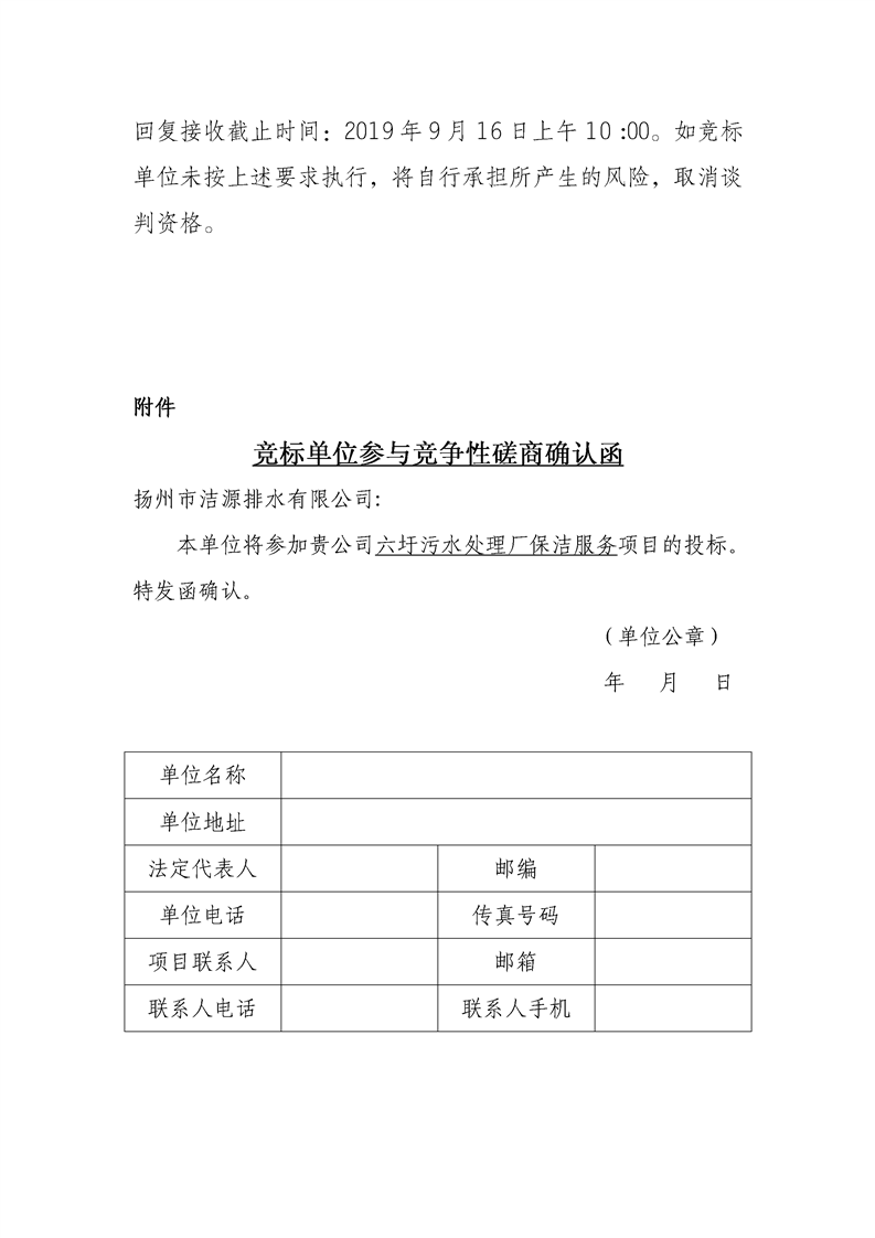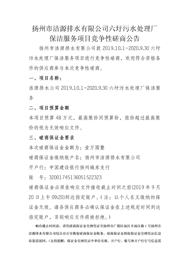 六圩污水處理廠保潔服務項目競爭性磋商公告