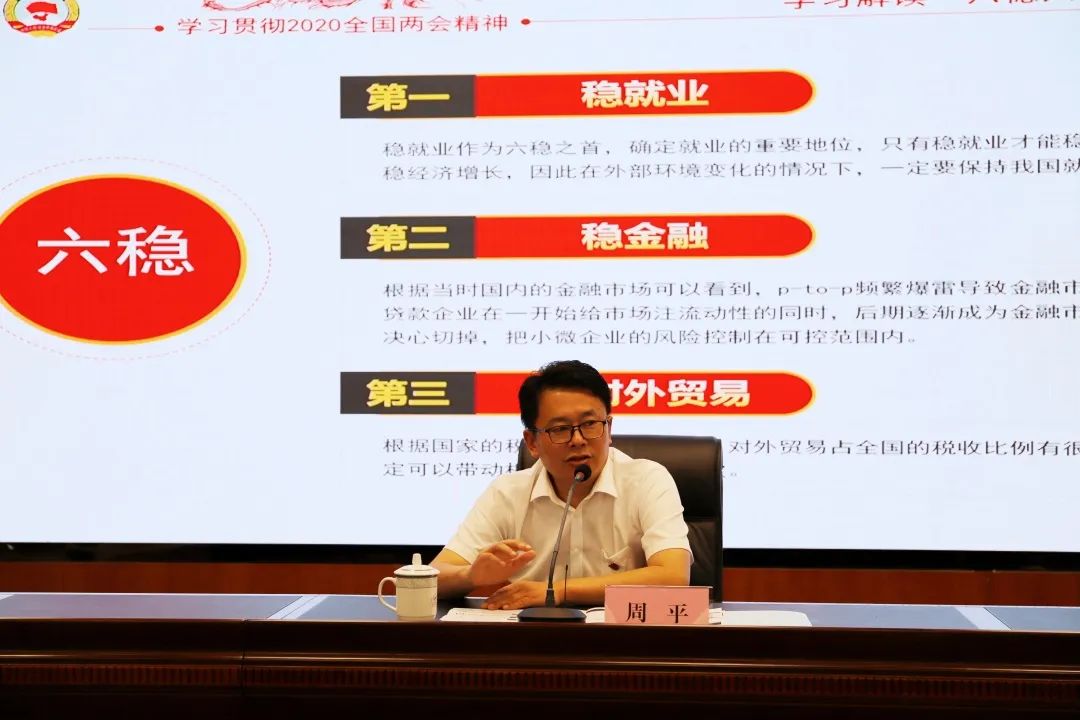 黨課從全國兩會為出發點,圍繞“六穩”“六保”來講述政府的工作重心和工作重點的轉變,指出面對嚴峻挑戰時,要堅持穩中求進工作總基調,堅持新發展理念。