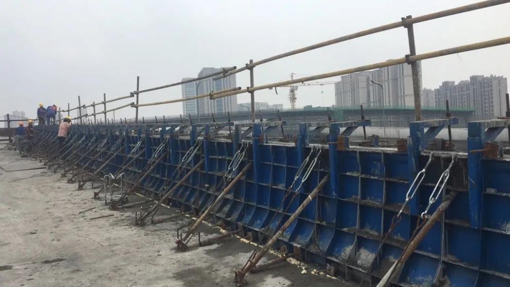 自防撞護欄施工以來,項目部多措并舉,綜合管控現場施工安全及質量,保證橋面系及防撞護欄施工穩步推進。面對防撞護欄施工圓曲線半徑較小、鋼筋預埋準確度控制難度大、鋼筋線型調整難度大等難題,從測量放線、立模校正到澆筑砼,全程設專人盯控,嚴格“三檢”制度,堅持“樣板引路”,抓好質量管控。同時,多次組織召開防撞護欄“回頭看”等專題會議,不斷總結經驗、優化施工方案,平穩有序推進施工進度。