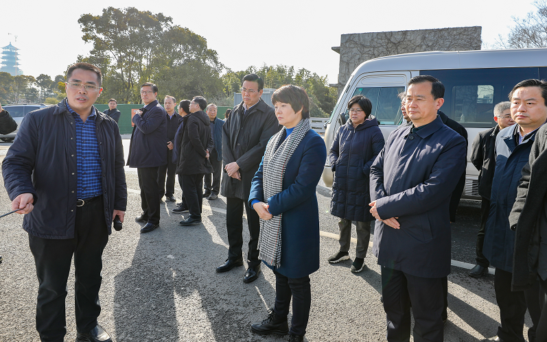 1月13日下午,市長張寶娟一行來到大學路南延三期工程現場,實地調研工程進展情況。副市長何金發,市政府秘書長尤在晶、副秘書長林寶榮和市相關部門負責人陪同調研,城控集團董事長葉善祥、副總經理季紅軍參加活動。
