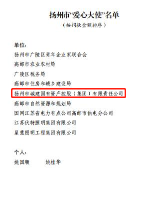 近日,揚(yáng)州市婦聯(lián)發(fā)布《關(guān)于表彰2020年度揚(yáng)州市實(shí)施“春蕾計(jì)劃”先進(jìn)典型的決定》。城控集團(tuán)被表彰為“愛(ài)心大使”榮譽(yù)稱號(hào)。