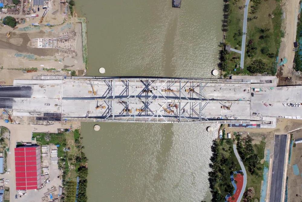 跨京杭運河大橋是萬福快速路工程重難點及控制性節點工程,施工難度大、精度要求高,決定著整個工程關門工期。施工過程中涉及的鋼棧橋施工、深基坑施工及上部結構吊裝均為超過一定規模的危險性較大的分部分項工程,施工安全風險高。為確保按期完成,錢俊多次組織召開專題推進會,倒排工期,掛圖作戰,制定詳細的施工計劃,出現偏差及時分析并修正調整;同時,加強與海事、航道、船閘等部門的對接協調,確保鋼構件及時進場、及時封航吊裝。施工期間,每天安排專人對施工部位進行巡查,檢查措施落實情況,針對發現的問題及時組織各方商討最佳解決方案,優化施工工藝。在全體參建人員的共同努力下,2021年1月27日,跨京杭運河大橋拱肋全部合龍;2021年4月16日,跨京杭運河大橋橋面板合攏......目前,萬福快速路工程正按照既定計劃順利推進,工程形象進度完成率近90%。