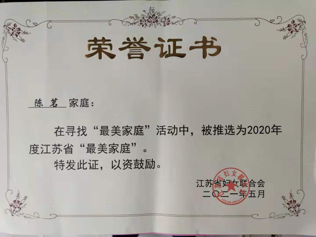 近日,2020年度江蘇省“最美家庭”揭曉,城控集團下屬市政管網公司陳茗家庭喜獲江蘇省“最美家庭”榮譽稱號。