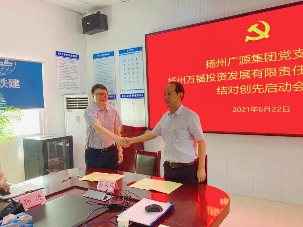 為落實黨史學習教育要求,進一步推動快速路供電桿線遷改工作,6月22日上午,在潤揚路快速化改造工程(百吉巷-同泰路北)項目部,萬福公司黨支部與揚州廣源集團管理黨支部開展了結對創先活動啟動儀式,共同組建黨員服務隊,助力快速路工程建設。