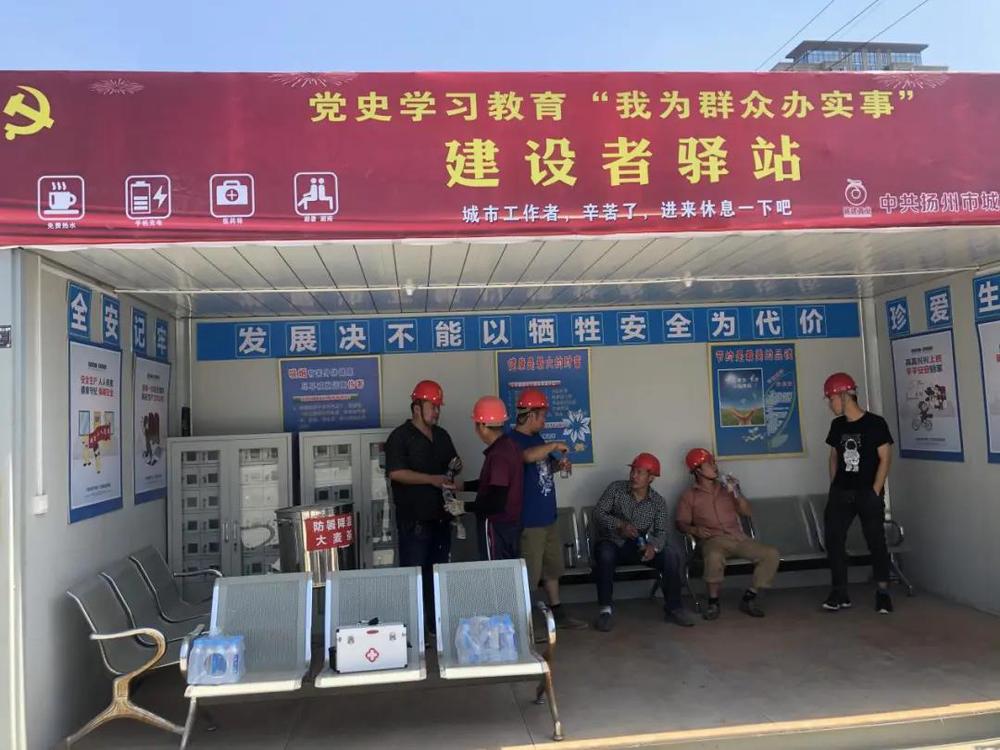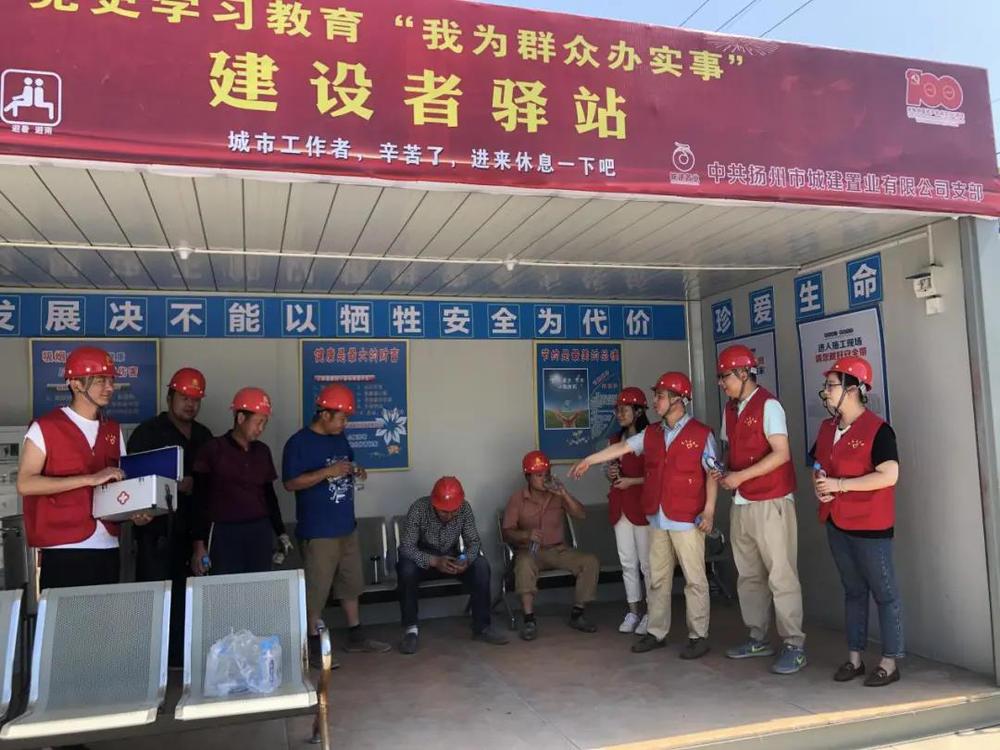 “建設者驛站”是城建置業公司黨支部籌劃為群眾辦實事、提供對外服務的一個穩定且持久的志愿服務平臺。項目現場,烈日當空,滿頭大汗的建筑工人們在黨員志愿者的引導下前往驛站納涼休息、喝水飲茶,在接過志愿者及時遞過來的純凈水時,他們被烈日灼紅的臉上綻開了憨厚淳樸的笑容。支部負責人在詳細了解一線工人的工作生活情況以及防暑降溫措施后,現場給大家發放了大麥茶、清涼飲料、醫藥包等防暑降溫物品,他對施工人員克服高溫天氣影響,堅守崗位認真工作表示感謝,一再叮囑大家要始終把安全和健康放在首位,項目部要切實關心一線職工,組織好錯峰作業施工,認真落實防暑降溫措施,為廣大戶外勞動者送安全、送清涼,預防夏季生產安全事故發生,確保企業安全生產和項目建設有序推進。