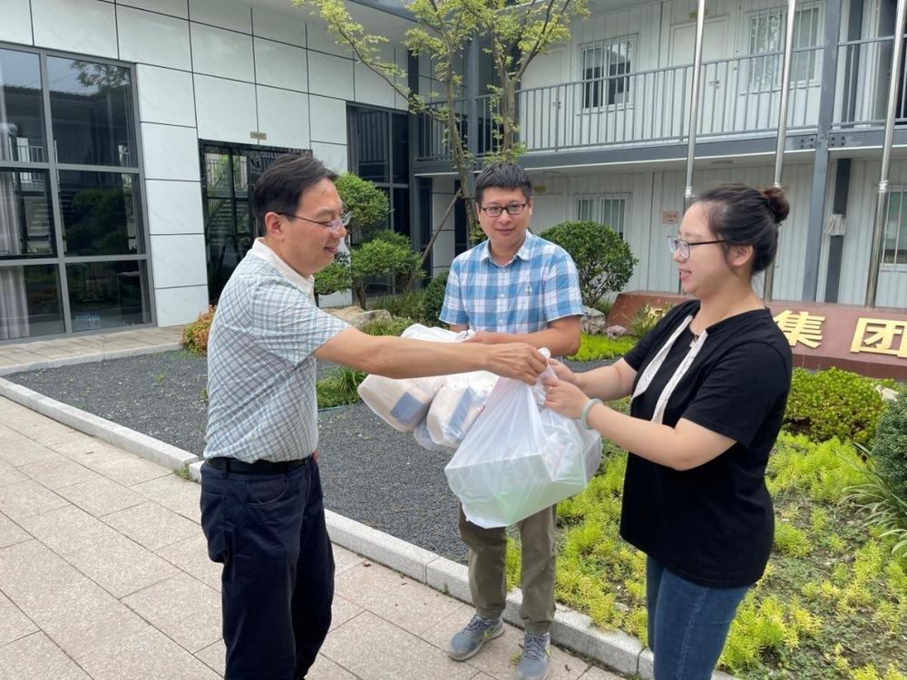 為做好高溫季節防暑降溫工作,切實保障一線職工的安全健康,有效促進重點工程建設。7月16日上午,置業公司工會主席帶領工會工作人員,先后來到九境融園和揚州頤和醫療健康中心工程項目現場看望慰問堅守崗位的一線員工,送去防暑降溫慰問品,把公司工會關懷送到員工心坎上。