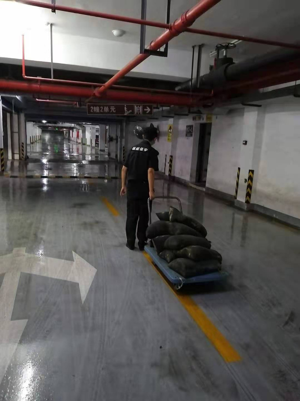 風雨無情人有情,居民小區的防汛工作更是牽動著物業項目人員和全體業主的心。由于提前做好了防汛準備,京杭融園小區一直平穩度過,直到最后一天,由于降水量太大,道路積漫灌進了地下停車場,物業人員迅速行動,全員冒雨上陣,緊急應對,爭分奪秒在停車場入口處堆疊起沙袋堤壩;調運抽水泵到積水情況較嚴重的區域,加速排水;趟著水在積水路段逐個打開排水井蓋,清理淤堵住排水口的垃圾……一系列應急工作迅速有序開展。暴雨猛烈的攻勢也讓業主感到十分焦慮,物業辦公室的電話此起彼伏的響著,物業群里的消息一條接一條的刷著,“物業電話怎么沒人接呀?”、“請問地下停車場淹了嗎,需要把車挪出去嗎?”、“上班還回得去嗎?”……項目經理們一面指揮著現場的排澇工作,一面還要抽空安撫著情緒緊張的業主,“不好意思,我們的人員全部都在現場,辦公室暫時沒人接聽電話,請您理解”、“我們正在盡力排水,大家不要緊張,車庫的積水并不深”、“小區西側主路并未積水,可以通行”……一條條回復安定了業主的心,業主們紛紛為我們的工作人員加油打氣,也愿意先克服臨時的困難,讓工作人員優先開展排澇工作。暴雨不會沖垮我們的信心,反而讓業主看到了更好的我們。