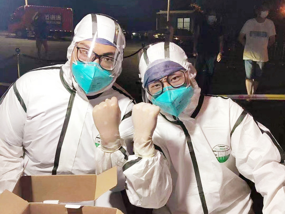 在核酸檢測點,劉寶帥頭戴口罩面罩,身穿防護服,頂著炎炎烈日,引導待檢測人員進行注冊、有序登記采集碼以及送樣等,全天完成社區核酸檢測6000枚。從白天到黑夜,忙碌奮戰14個小時,防護服換了5套,手上皮膚也因長時間戴防護手套,被汗水泡得浮腫發白,遇到不理解的群眾時,還要微笑面對、耐心指導,嗓子都沙啞了。問他一天下來,感受如何?他沉默了片刻說道“致敬所有醫護工作者,他們真的很偉大”。是啊!哪有什么歲月靜好,只是有人在替你負重前行。劉寶帥用自己的實際行動踐行了他向黨組織靠攏的錚錚誓言,體現了他堅定的入黨決心意志,在黨和人民需要的時候,挺身而出、不畏疫情,站在一線,為抗擊疫情、守衛家園貢獻自己的力量。