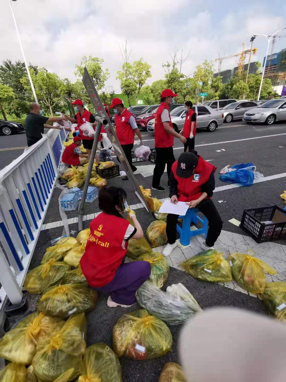 8月6號清晨,志愿者增援隊6人和“管家隨時CALL”志愿者一同,準時到達指定地點,進行各種蔬菜、肉類的登記、分揀、核對和傳送。這是屬地政府逐漸打通物資供應渠道、封閉區域內物資供應日漸恢復和豐富前,資產公司最后一次組織的集中配送,也是物資需求量最大的一次。后續,業主的日常米面油蛋和肉蔬需求,都可以通過屬地防疫指揮部審核通過的商超企業進行采購了。我們的志愿人員將主要負責幫助業主進行一些特殊需求物資的購買和運送。