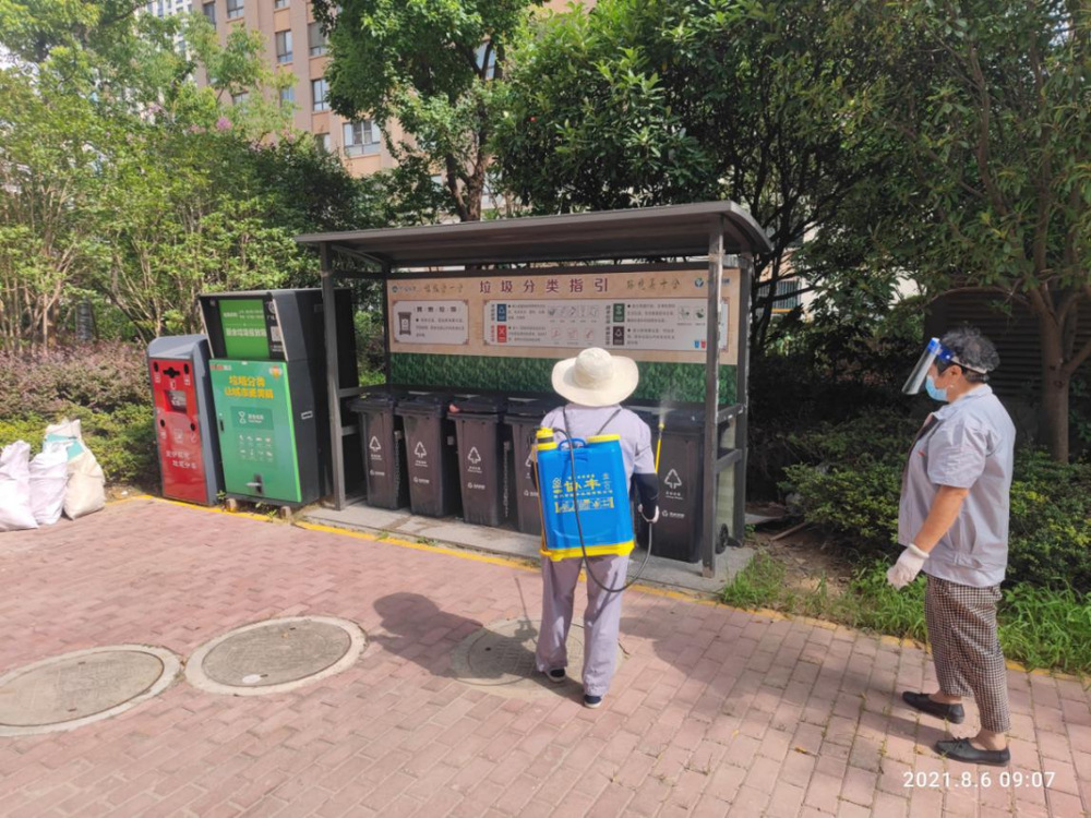 而在京杭融園小區內,保潔人員也各就各位,各司其職,認真細致的做好每日消殺工作。室內的電梯、樓層門廳、入戶大廳和室外的垃圾桶,垃圾池,是重點消殺區域。健身區域、兒童游樂區和公示欄前雖然已經幾乎沒有人,但也不能放松,還是要進行噴灑。警戒線周圍更是需要反復消殺,加密消殺。