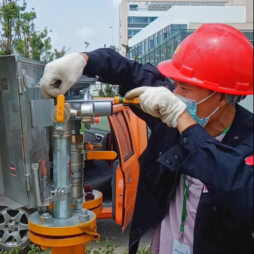 接到求援電話后,調度中心值班人員立即匯報公司領導。23時30分,一支由生產運營部調壓、維修精干人員組成的搶修小分隊出發了。到達現場經過仔細檢查,最后確定是調壓裝置中的關鍵零部件損壞,造成燃氣無法供應。因受疫情影響,損壞的備件雖然能夠采購,但是無法按期運輸或郵寄至揚州。此時時針已指向凌晨一點,為保證隔離點項目如期完成,具備人員隔離條件。第二天早上,公司即組織采供、工程、生產、客服各部門討論方案,最終決定將其它安裝未投入使用的同型號RX100調壓器皮膜拆除后安裝至故障調壓器。經過各部門協同作戰,6日中午12時多,隔離點項目燃氣設備投入使用。