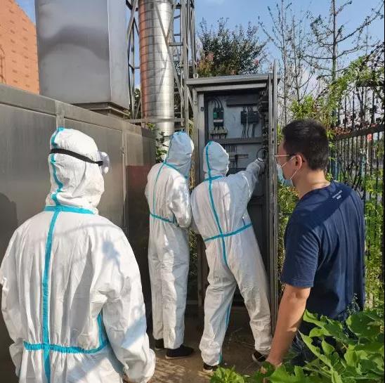 疫情期間,儀揚河泵站除臭設備突發故障,為防止異味散發,影響公共環境,公司第一時間組織保供預備隊維修人員進行了設備搶修。在全面防護并做好氣體檢測的前提下,維修人員及時排查出故障,烈日下連續工作不停歇完成了搶修任務,確保了泵站周圍環境環保、健康、安全。