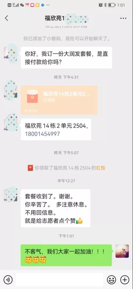 病毒無情人有情,志愿者們在全心全意為居民服務的同時,居民們也在用自己的方式溫暖著志愿者們的心,一聲聲感謝,一個個叮囑,一句句體貼的“不用回復我的信息”……志愿者與居民的雙向奔赴讓我們相信,只要我們不懼困難,團結同心,疫情終將被戰勝,勝利必將屬于揚州人民!