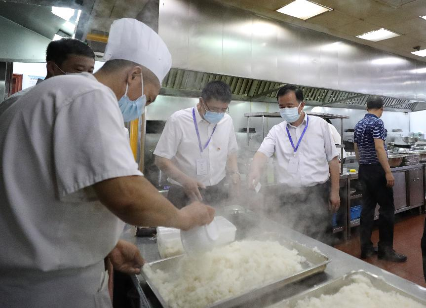 檢查過程中,葉善祥聽取了長樂客棧負(fù)責(zé)人關(guān)于疫情防控工作匯報(bào),詳細(xì)了解封閉管理期間滯留旅客和防疫人員的住宿和三餐安排,以及他們的核酸檢測情況。他指出,要落實(shí)好食品安全管理,嚴(yán)把食品安全關(guān),提倡無接觸收貨,加強(qiáng)庫存食品安全管理,及時(shí)清理過期變質(zhì)的食品和原料;要落實(shí)好環(huán)境衛(wèi)生管理,每日做好公共區(qū)域、餐飲區(qū)域消殺,嚴(yán)格餐具衛(wèi)生管理,強(qiáng)化無接觸送餐,用餐結(jié)束后對所有餐具進(jìn)行全方位的清潔和消毒;要落實(shí)好人員管理,做好宣傳以及心理疏導(dǎo)工作,切實(shí)關(guān)心封閉管理人員的心理和生活,做好后勤保障。