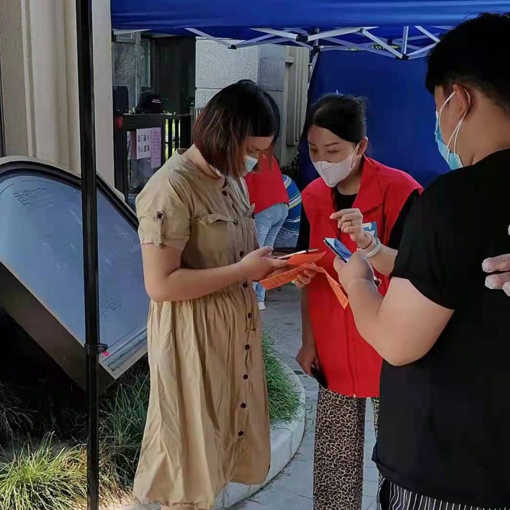 “管家隨時(shí)CALL”志愿隊(duì)到達(dá)現(xiàn)場(chǎng)后迅速根據(jù)現(xiàn)場(chǎng)情況自行分工,一部分加入辦證隊(duì)伍,和社區(qū)人員共同為業(yè)主辦理出入證,詳細(xì)核實(shí)業(yè)主的蘇康碼、核酸檢測(cè)陰性證明、房產(chǎn)證,確保出入證辦理的準(zhǔn)確性;另一部分加入出入口管控隊(duì)伍,一邊核查進(jìn)、出業(yè)主身份、蘇康碼、行程碼,一邊告知業(yè)主最新的管控要求,提醒業(yè)主一定要買夠三天以上的生活物資。