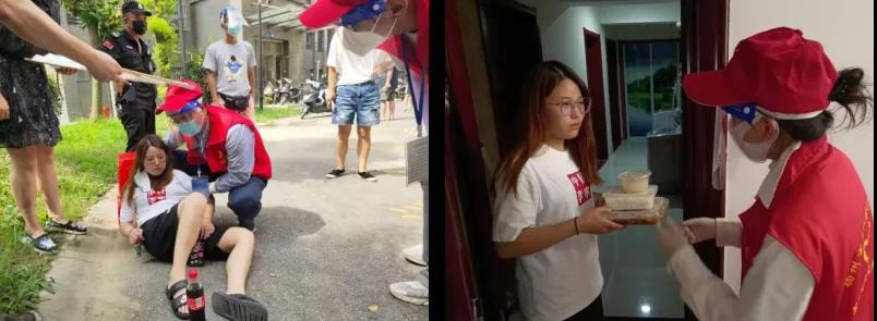 早晨的揚州,烈日灼烤。核酸檢測現場,志愿者們一邊維持著秩序,一邊細心觀察著隊伍中人群。突然,一位20歲左右的小姑娘踉蹌著往隊伍外走了幾步,眼看著要跌坐下來,志愿者成愛祥趕緊上前一把拉住了姑娘手臂,扶她坐下。 小姑娘臉色發白,虛弱的喘著粗氣,豆大的汗珠從臉頰滴落下來。志愿者孫卉說到:“昨天看這個小姑娘,氣色就有點不太好,今天怎么突然暈倒了”,說罷她便趕忙上前詢問狀況。小姑娘躊躇了一會,委屈的說到:“我一個人在揚州,在小區租了房子,這疫情來了,也不敢出去,小區里小賣部的東西早就賣完了,這幾天都是吃家里剩下的一些餅干。”志愿者們趕緊給小姑娘扶起來,送回家里休息。隨即,孫卉便趕緊聯系到了盒飯送到了小姑娘家中,她對小姑娘說:“一個人在揚州,不要怕,我們就是你的家人,要買什么東西,有什么困難直接和我們說。”小姑娘眼眶泛紅的接過盒飯之后連聲道謝。關上門后,志愿者們又回到了工作一線。