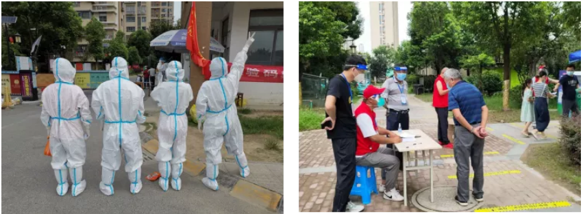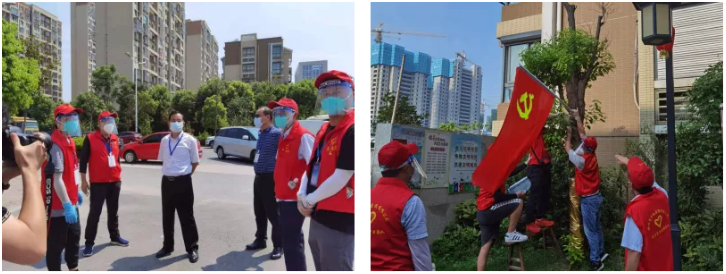 名城公司的志愿者歸編于城控集團(tuán)志愿服務(wù)第7組,由集團(tuán)總會計(jì)師何志軍統(tǒng)一帶隊(duì)。在學(xué)習(xí)志愿服務(wù)相關(guān)制度要求,以及基本個(gè)人防護(hù)知識后,于8月7日進(jìn)入掛包小區(qū):天福花園,正式開始了志愿服務(wù)工作。為了提高志愿小隊(duì)全員的凝聚力和戰(zhàn)斗力,建立了臨時(shí)黨支部,并由何志軍擔(dān)任支部書記,將黨旗飄揚(yáng)在抗疫的第一線。