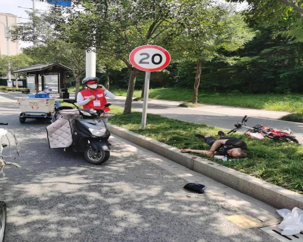 8月25日下午13時左右,集團志愿者服務隊第一組成員建盛公司員工趙斌在趕往翠月花園志愿者服務點途中,經過萬福東路“名城運河錦園”南門時,突然聽到對面車道傳來“嘭”的一聲,一名騎電動車的男子突然倒下,走近后發現,該男子面部朝地摔在了馬路邊上的綠化帶中,滿臉是血,已無法站立。