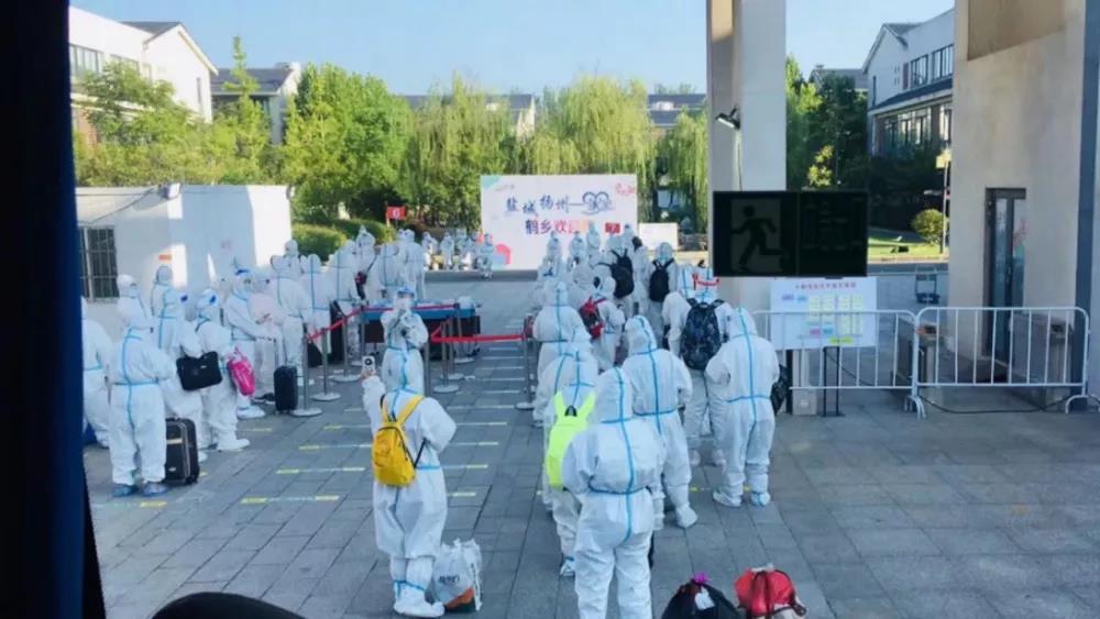 漸行漸遠的故土,四個多小時的不眠路,8月8日上午,大巴終于抵達了隔離點——鹽城市亭湖區千鶴灣溫泉度假酒店。一下車,志愿者們的笑臉、“鹽城揚州一家親”的醒目標語橫幅無不讓我們這些舟車勞頓的“蛋炒飯們”感受了來自東道主“魚湯面們”的暖意和溫情。在酒店前臺履行完一系列信息登記、測量體溫和核酸檢測流程后,我們一行人被分組帶入隔離客房。打開門,印入眼簾的除了有日常所需的生活用品外,貼心的工作人員還備了飲料、水果、堅果等零食,讓作為資深吃貨的我閃過了一絲不想走的念頭。而書桌上靜靜躺著的《致揚州朋友的一封信》和《一場風花雪月的鹽城》,更是讓我感受到了鹽城人的細致用心。