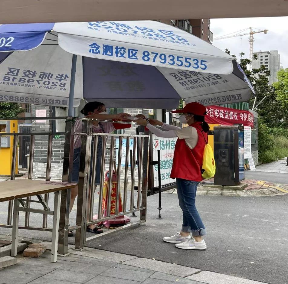 (生產運行處陳晨,在樹人苑社區認真對核酸檢測人員進行體溫測量,同時進行居家隔離勸導)