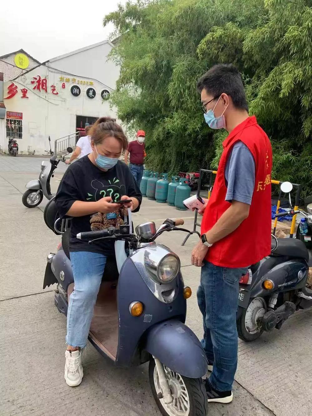 (六圩廠劉佳曦在徐凝門社區羊胡巷卡口勸導居民不出行,對必要出行者測溫登記后查驗工作通行證和蘇康碼)