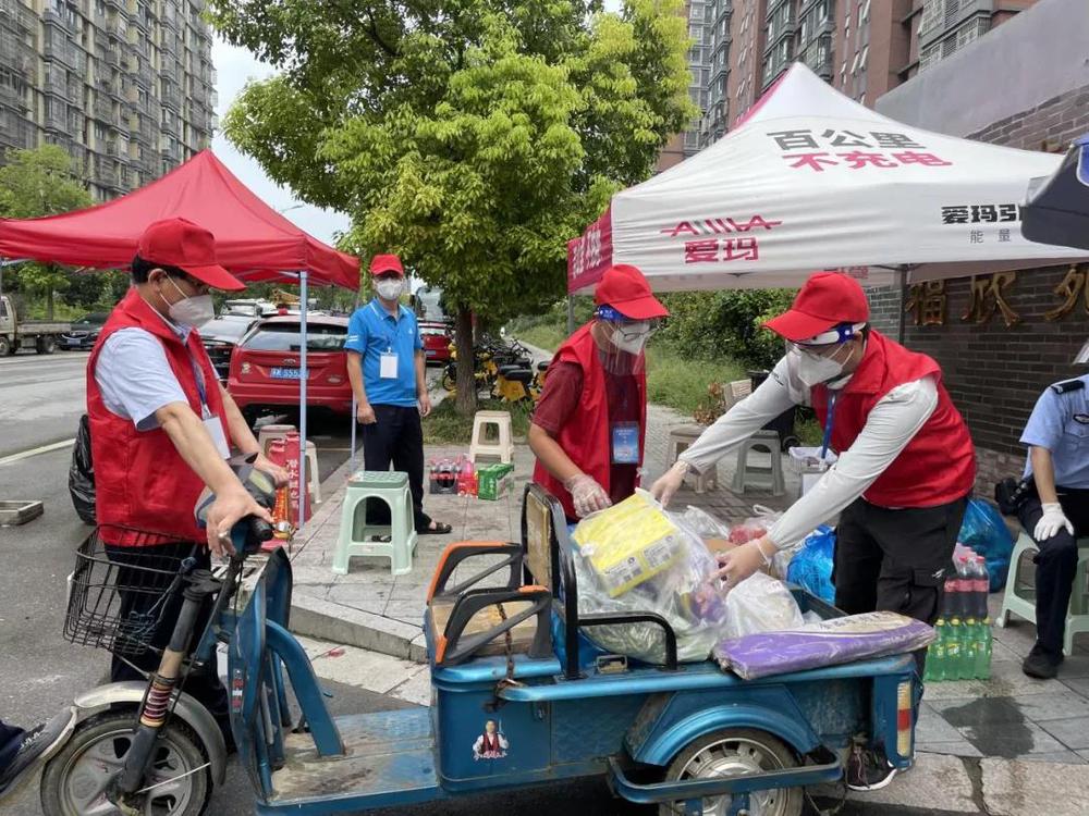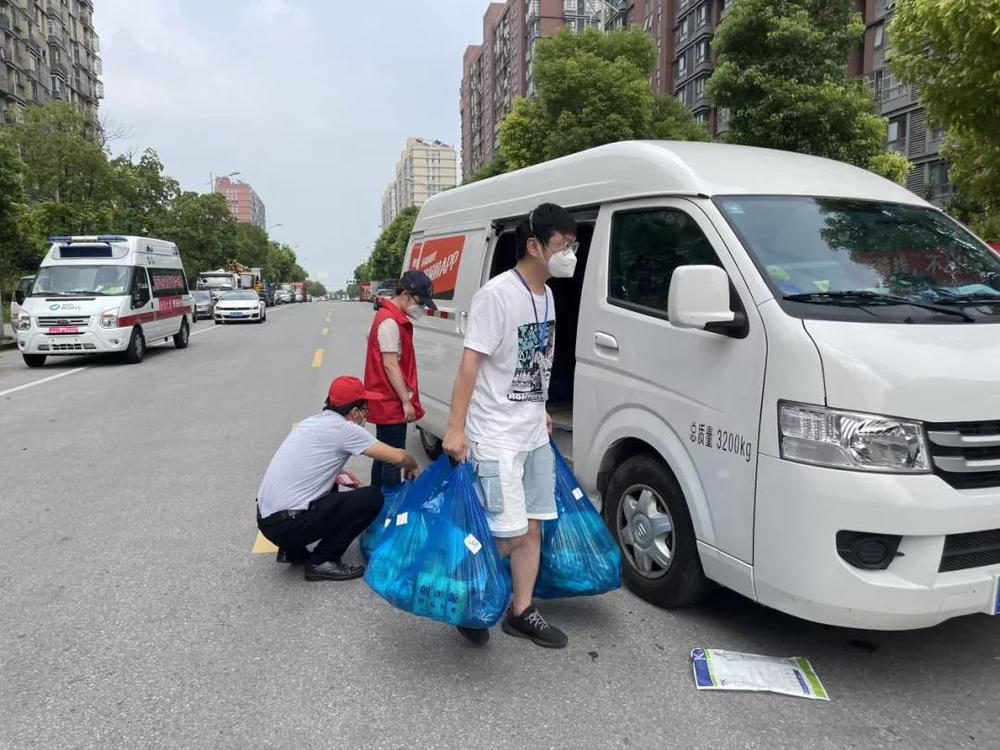 (安全保衛處 易飛,在萬福社區為配送物資進行裝車,做好樓棟統計后的分發)