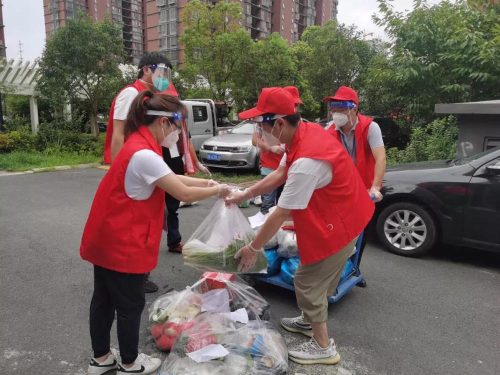 (總工程師辦公室欒奕,在文昌花園社區為居民菜籃子“送貨上門”,并對居民居家隔離心理輔導)