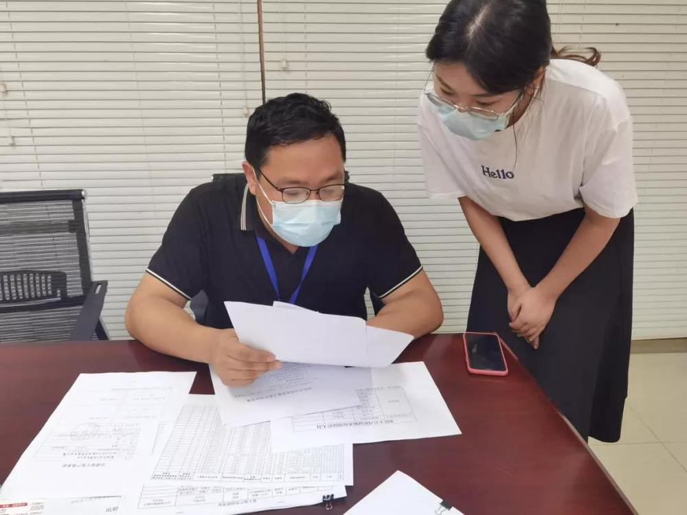 (竹西街道工作人員實地檢查市民卡公司復工復產情況與臺賬資料)