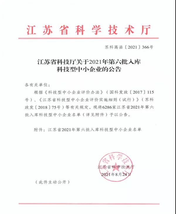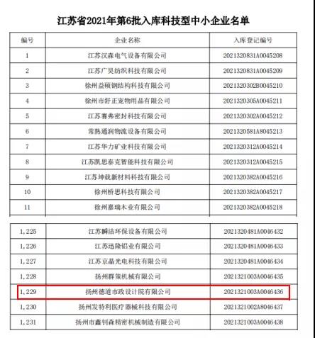 近日,從江蘇省科學技術廳傳來好消息,公用控股德道設計院順利通過審核,成功進入江蘇省2021年科技型中小企業庫。