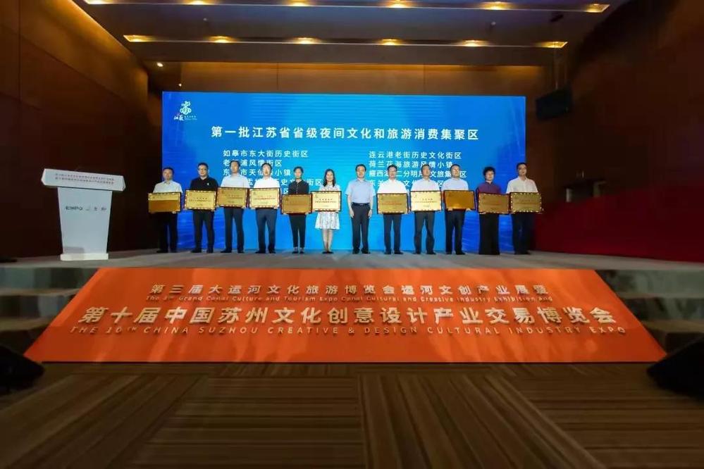 9月23日上午,江蘇省首批夜間文化和旅游消費集聚區(qū)授牌儀式在蘇州舉行,省文化和旅游廳黨組書記、廳長楊志純出席并授牌,城控集團(tuán)東關(guān)歷史文化旅游區(qū)榮獲殊榮,城控集團(tuán)黨委委員、名城公司總經(jīng)理戴興春作為代表上臺領(lǐng)取獎牌。