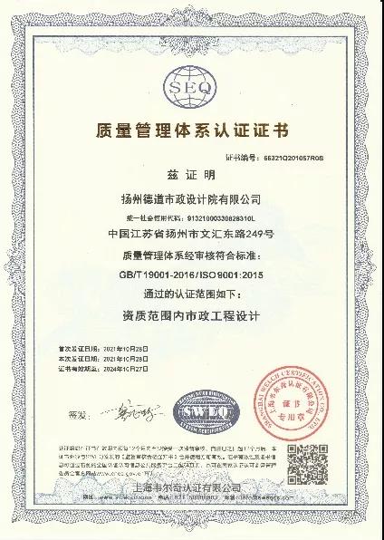 ISO管理體系認證通過,標志著揚州德道市政設計院管理逐步步入規范化、標準化的現代企業管理軌道。下一步,德道設計院將會對標管理體系,以標準管理為抓手,以優質服務為準則,以零缺陷為目標,真正達到法制化、科學化的要求,助推企業高質量轉型發展。