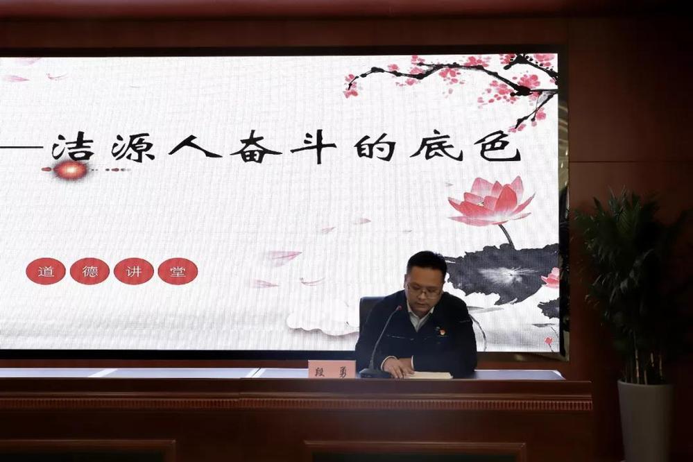 為提升職工思想道德修養(yǎng),弘揚(yáng)文明正能量,11月19日下午,潔源排水公司以“愛崗敬業(yè),潔源人的奮斗底色”為主題,開展了道德講堂活動。公司領(lǐng)導(dǎo)班子全體成員、中層干部、團(tuán)員、青年職工40余人參加了活動。