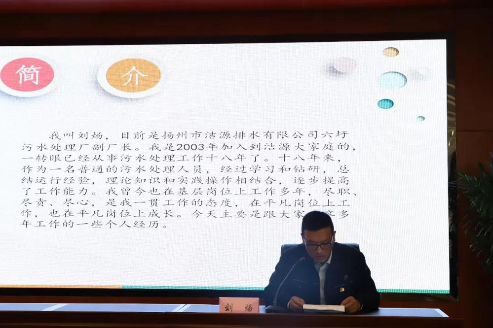 隨后,活動進(jìn)入先進(jìn)老黨員道德宣講環(huán)節(jié)。生產(chǎn)運(yùn)行處處長段勇以質(zhì)樸的語言、真摯的情感,給大家分享了自己進(jìn)入公司19年以來的工作經(jīng)驗(yàn)。段勇說到,敬業(yè),首先要做到勤學(xué)習(xí)、熟技能,在磨練自身技藝的同時,還要做到多溝通、不畏難,工作要有高標(biāo)準(zhǔn),做到常思考、多實(shí)踐,努力實(shí)現(xiàn)與企業(yè)共成長。接著,六圩污水處理廠副廠長劉煬從自己的工作實(shí)際出發(fā),向大家談了自己的成長經(jīng)歷和心路歷程,分享了工作經(jīng)驗(yàn)和學(xué)習(xí)心得,勉勵大家不怕吃苦、甘于奉獻(xiàn),在平凡的崗位干出不平凡的業(yè)績。