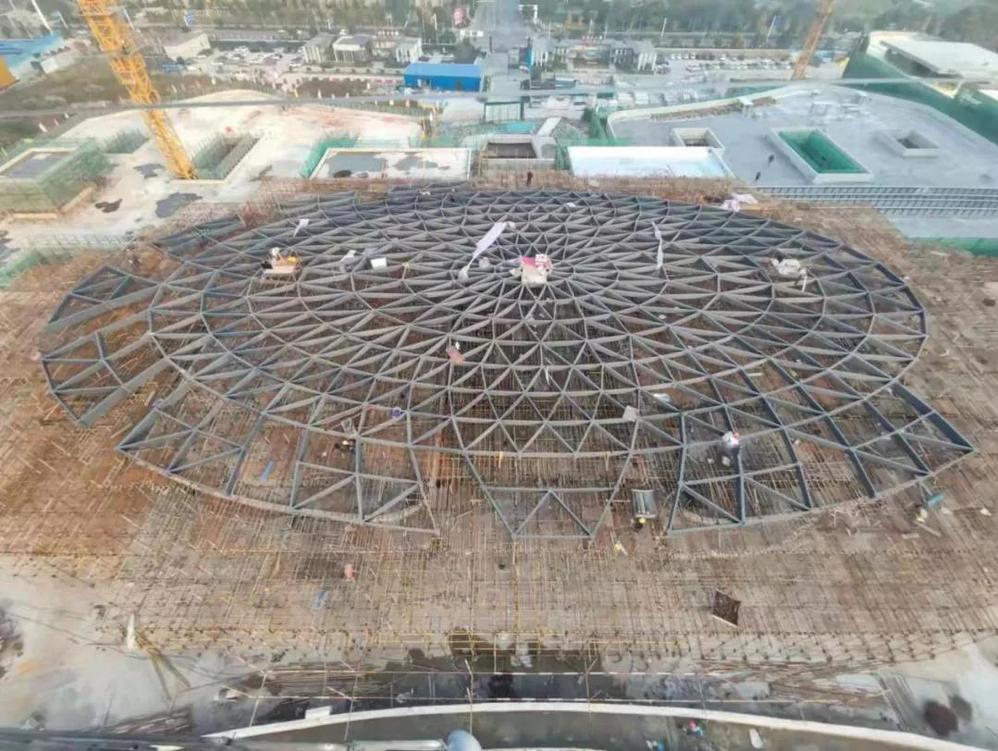 由城建置業公司承建的揚州市民生重點工程——揚州頤和醫療健康中心正在火熱施工中。截至11月23日,頤和項目鋼結構穹頂已初現雛形。