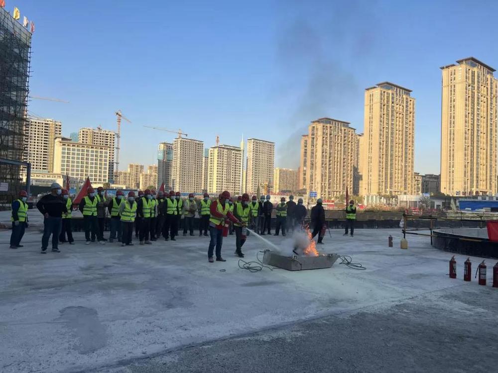 在應急演練環節中,專業人員首先對滅火器的種類、常用滅火器的使用方法及注意事項進行了講解,并現場示范。隨后,在場工人輪流使用干粉滅火器進行滅火實戰練習,親身感受在火場如何正確滅火。通過現場實際操作提升了發生火災時的應急處置能力。