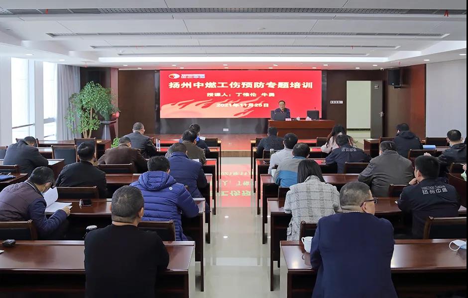 為健全完善工傷預防、康復、補償“三位一體”的工傷保險制度體系, 11月25日下午,揚州中燃公司邀請北京外企人力資源服務江蘇有限公司專家開展工傷預防專題培訓。公司一線部門負責人、班組長和全體安全員參加活動。