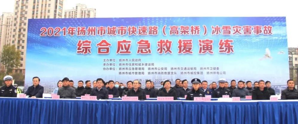 為進一步完善城市快速路應急處置聯動機制,切實提高相關部門單位配合處置能力水平。12月24日下午,市政府在運河快速路江廣互通開展了惡劣天氣城市快速路(高架橋)冰雪災害事故綜合應急救援演練活動。市委常委、秘書長、副市長趙慶紅,副秘書長林寶榮,市住建、應急、公安、交通、消防、城管、衛健等相關市級部門和各功能區負責人參加活動。活動由市住建局承辦,城控集團等相關單位協辦,城控集團副董事長戚磊參加活動。