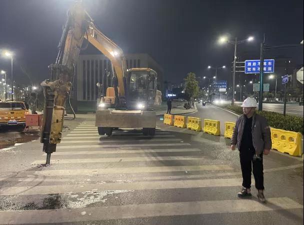 長江水務潤元公司緊急召開搶修方案討論會,做好搶修施工準備工作,并協調供水調度中心對西湖增壓站實施降壓供水,晚上7點,管道搶修工作全面開始。搶修現場破碎機和發電機轟鳴,熱火朝天,新年伴隨著遠處傳來的鞭炮聲如期而至。在辭舊迎新的跨年之夜,搶修施工人員冒著凜冽的寒風,奮戰在搶修一線,地下管線密集交織、道路結構層堅硬、漏水不斷滲入工作坑內,給搶修帶來了很大困難,大家各司其職,克難求進,加快工作進程。
