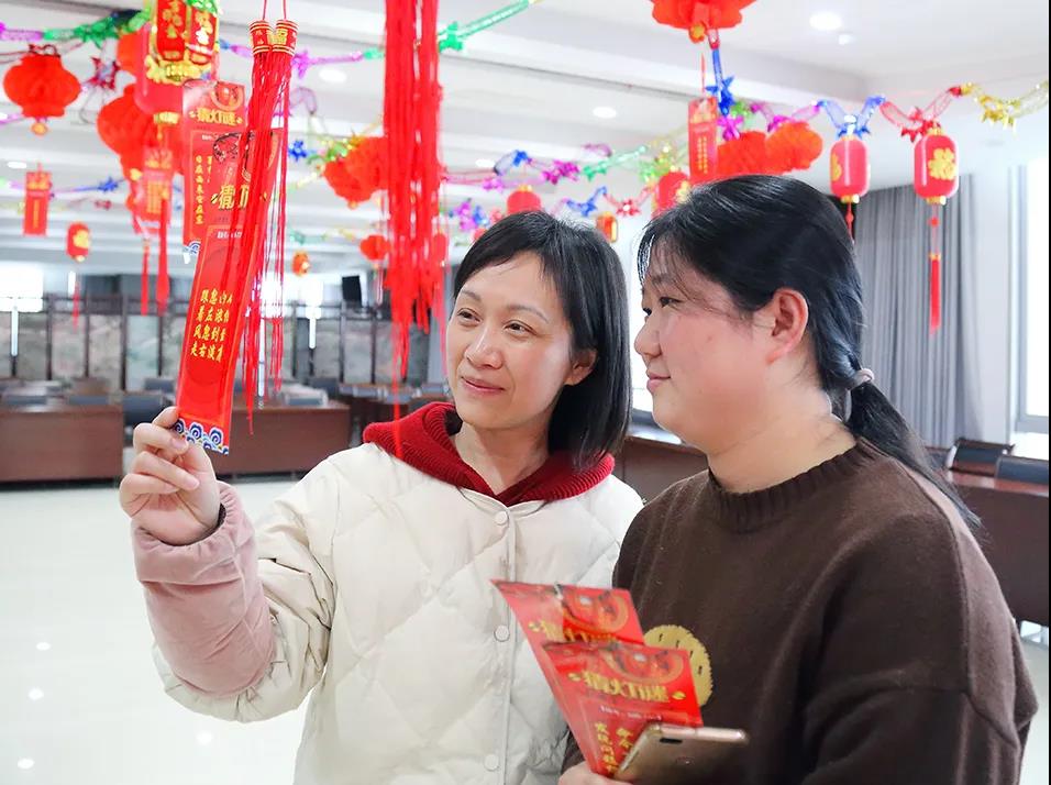 活動現場布置的喜慶熱鬧、富有創意,謎面包括安全、廉政、保健、文學、詩詞、地名等,集知識性和趣味性。一盞盞火紅的燈籠懸掛在大廳,一張張“燒腦”的燈謎垂墜燈籠之下,引導著職工們穿梭徜徉在“謎林”中。職工們站立在燈籠邊,翹首看著謎面喃喃低語,思索著謎底,現場氣氛十分活躍,構成了一幅歡樂祥和的畫面。兌獎現場更是排成了長龍,大家憑猜出的謎面,興高采烈在領獎處兌換了各種獎品。