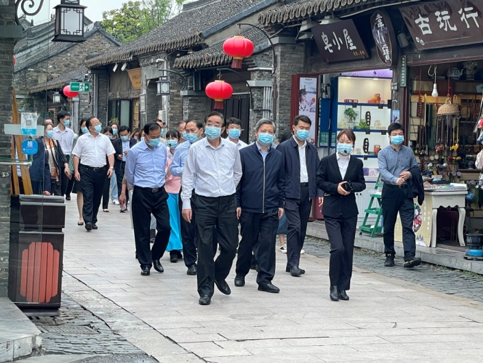 5月26日下午,江蘇省人大常委會副主任許仲梓帶隊到東關街調研。省人大常委會副秘書長朱有華,省人大常委會教科文衛委主任陸永泉,省委宣傳部副部長徐寧等領導陪同調研。市人大常委會主任孔令俊,市人大常委會副主任韓方,城控集團黨委書記、董事長葉善祥及市相關部門負責人參加活動。