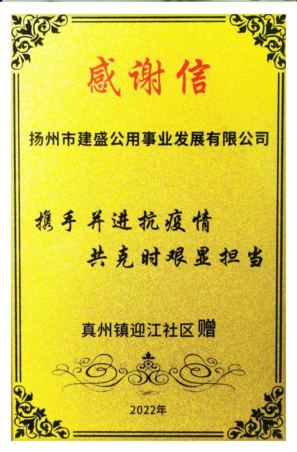 5月31日上午,迎江社區負責人將一封感謝信送至建盛公司,以表達對公司鼎力相助社區疫情防控工作的感激之情。
