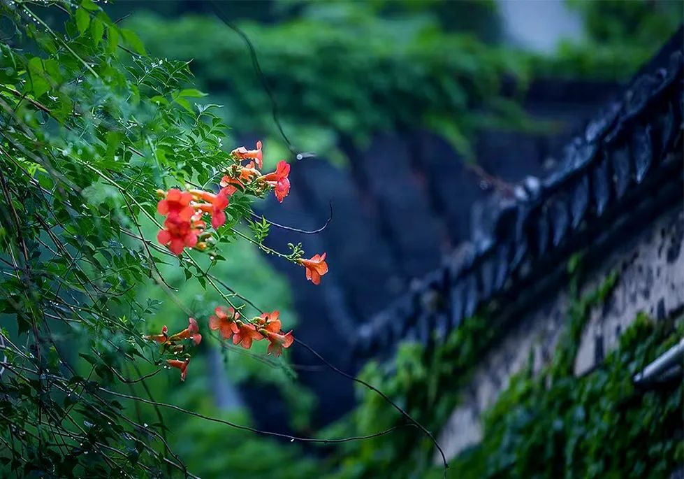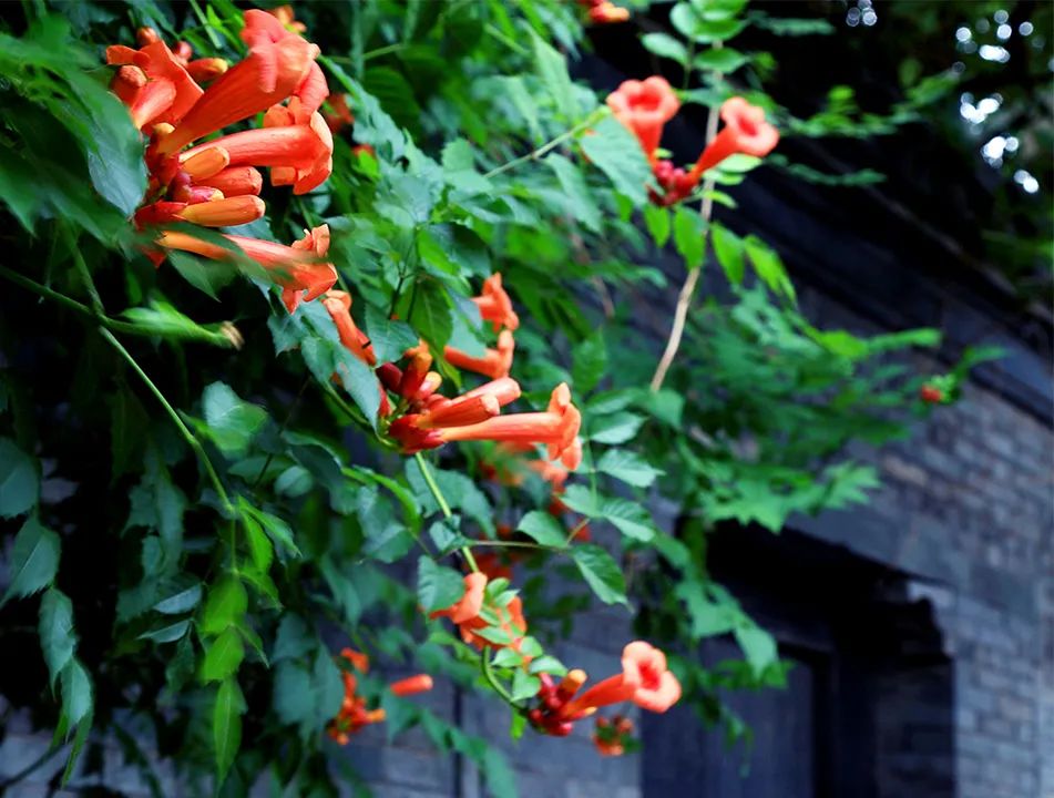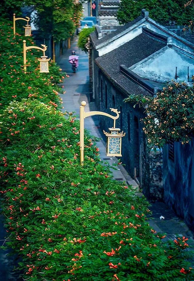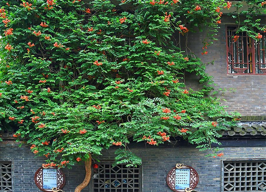 滿墻的凌霄花為古街披上夏日盛裝,