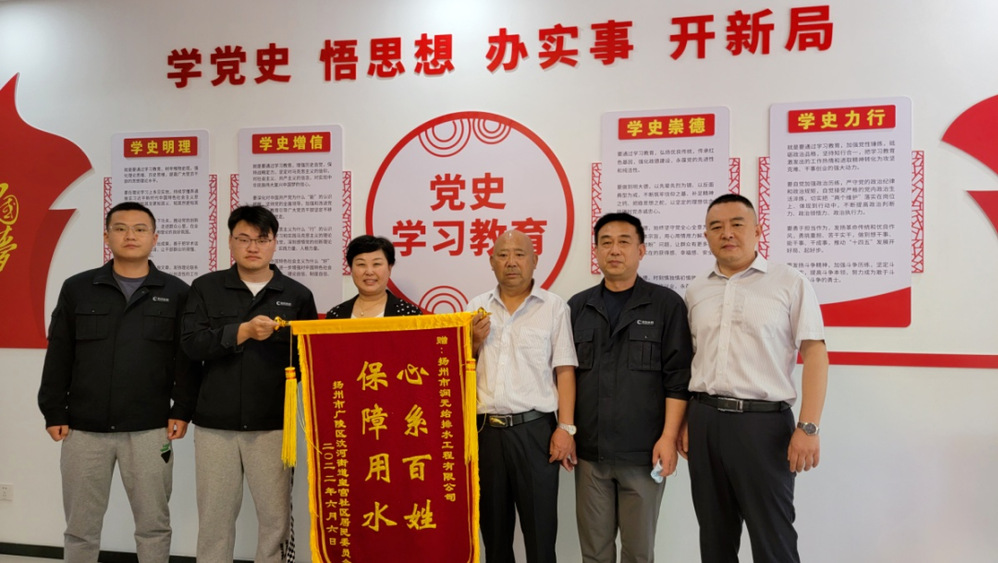 “九巷十巷雨污水分流改造工程是便民利民的大好事,衷心地感謝潤元公司為老百姓打造的精品民生工程!”6月7日上午,皇宮社區居委會李主任將一面繡有“心系百姓,保障用水”的錦旗送到潤元公司。