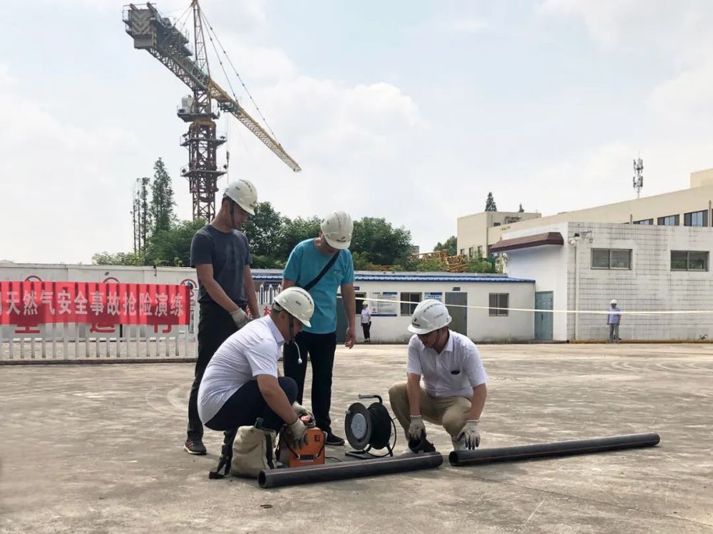 此次演練模擬工作人員在日常巡檢中,發現PE100燃氣管道損壞,導致天然氣泄漏展開應急處理。發現險情后,公司立即啟動應急預案,迅速安排應急搶險人員進行現場處置,關閉氣源及加壓站調壓設施、設置警戒線、進行現場環境濃度檢測,最終排除險情恢復供氣。