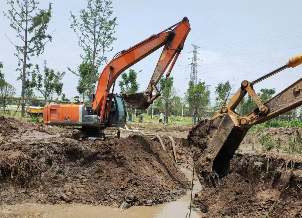 接到搶修指令,長江水務搶維修中心立即派出兩組搶修人員,沿著春江路頭橋水廠至樸席的供水主管道分頭排查,中午12點在春江路北側晶澳公司附近發(fā)現(xiàn)路北有水大量涌出,形成面積較大的水坑,判斷是地下DN1000供水主管道漏水。長江水務公司迅速組織搶修,關閉兩個主控閥門后,搶修人員筑起堤壩不停向外排水,但由于現(xiàn)場地質(zhì)松軟,基坑周圍不斷有泥土塌陷,加上搶修現(xiàn)場有兩條高壓煤氣管線,給搶修造成極大困難。在搶修過程中,又發(fā)現(xiàn)水坑里的污水管同時也在漏水,長江水務公司聯(lián)系了市政管網(wǎng)部門配合加大污水的抽排。