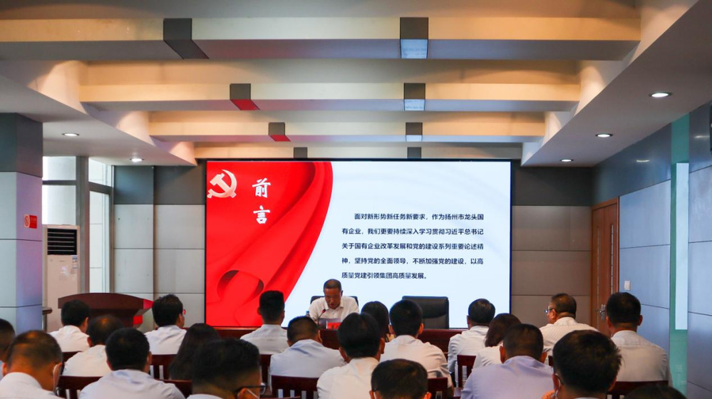 7月13日下午,集團黨委委員,名城公司黨總支書記、總經理戴興春到揚州市政管網公司開展“禮贊新時代 追夢復興路”專題黨課宣講,管網公司領導班子成員、中層干部、黨員和積極分子參加活動。