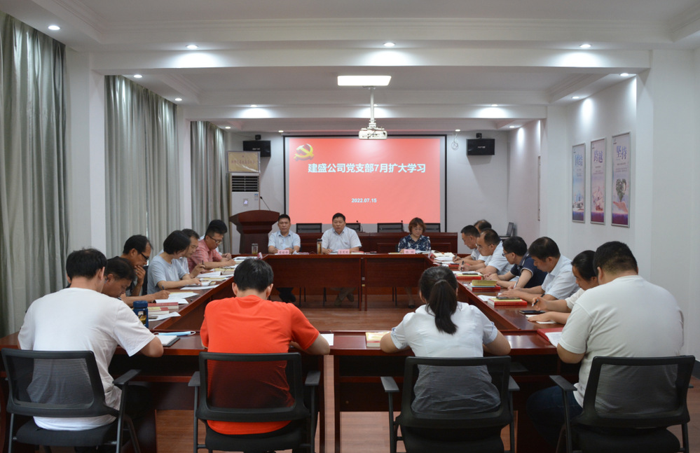 7月15日上午,建盛公司黨支部召開支部(擴大)學習會。公司領導班子成員、全體黨員和入黨積極分子參加會議。