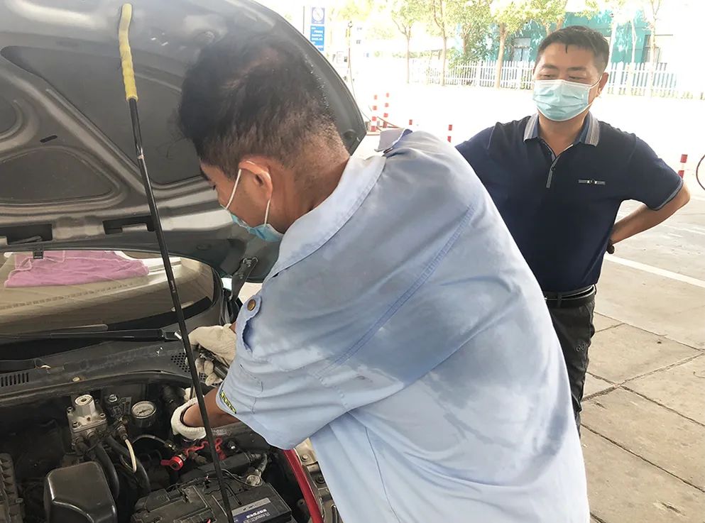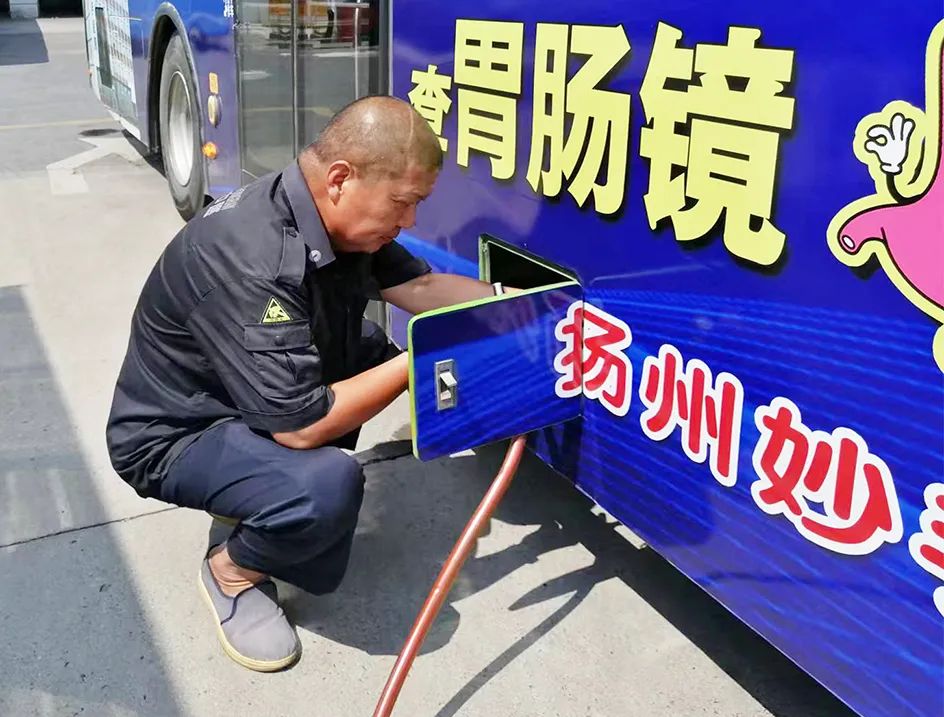 揚州中燃公司8座加氣站擔負著揚州市區公交車、出租車、網約車等車輛的加氣職責。連日高溫,車輛開啟空調后用氣量加大,加氣量由之前的每天5萬立方增至6萬立方。為此,車用氣一方面確保優質服務,保證車輛隨到隨加,并為駕駛員免費提供熱水、微波爐熱飯、大廳空調休息等服務;另一方面確保安全生產,為員工發放防暑降溫物品,各場站安排員工輪換加氣。客運東站加氣站沒有加氣大棚,更是高溫難耐,加氣工身上的衣服濕了干、干了濕,衣服上畫滿了鹽漬“地圖”,他們用汗水詮釋責任,用責任彰顯擔當。打開后備箱檢查隱患、插槍加氣等操作流程一絲不茍,以實際行動落實燃氣安全“百日行動”。