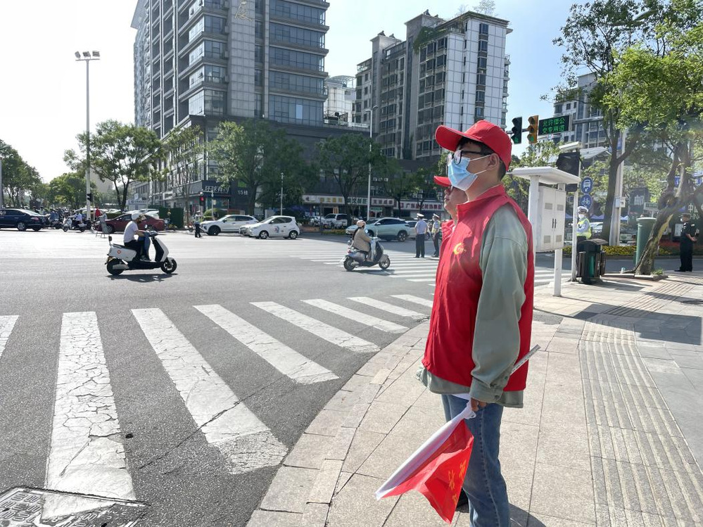 入伏以來(lái),氣溫逐步攀升,戶外更是熱浪逼人,本周連續(xù)近40度的高溫天氣,交通志愿服務(wù)仍在進(jìn)行中。長(zhǎng)時(shí)間的高溫沒(méi)有打消志愿者們的服務(wù)熱情,他們深知交通秩序是城市文明的窗口,平均每天2小時(shí)的在崗時(shí)間,在揚(yáng)子江中路與文匯東路交叉口,他們穿戴紅色志愿衣帽,手拿小紅旗,對(duì)機(jī)動(dòng)車不禮讓行人、行人不走斑馬線、橫穿馬路,以及非機(jī)動(dòng)車逆向行駛等行為進(jìn)行禮貌說(shuō)服,耐心勸導(dǎo)。“現(xiàn)在是紅燈,請(qǐng)您稍等。”“您好,請(qǐng)后退,斑馬線上不能停車。”......驕陽(yáng)下?lián)]動(dòng)著“文明交通”的小紅旗,他們的汗水與付出,維持了上下班高峰期的有序通行,形成了車輛行人各行其道、秩序井然、互相禮讓的文明交通環(huán)境。