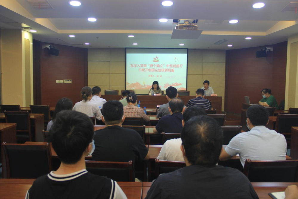 潘涵以《在深入貫徹“兩個確立”中堅毅前行,不斷開創國企建設新局面》為題,以“國有企業要理解、貫徹好‘兩個確立’,關鍵是要解決好‘怎么看’和‘如何做’”為切入點作了詳細闡述,并對市民卡公司轉型發展提出了要求。